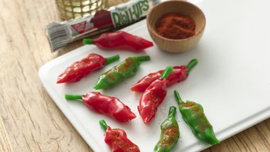 • 6 franjas rojas (fresa) de la caja de Fruit Roll-Ups® Flavor Mixers