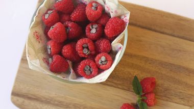 • 1/3 de taza de conconservas o mermelada de frambuesas sin semillas