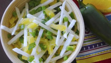 En un platito mezcla los ingredientes restantes hasta que todo este bien incorporado. Agrega la mezcla de la crema a la fruta. Sirve.