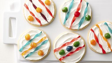 Desenrolla y quita el papel de los 8 snacks Betty Crocker Fruit Roll-Ups. Dobla cada rollo de fruta a la mitad, luego dóblalo otra vez a la mitad para formar un cuadrado. Presiona suavemente para formar un cuadrado de aproximadamente 3 pulg. Usando un molde redondo de 2 ¾ pulg., corta el snack de fruta de forma circular.