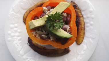 Los frijoles negros Progresso®, el arroz y el tocino se combinan en este delicioso desayuno listo en 25 minutos-una rica receta de Centro America.
