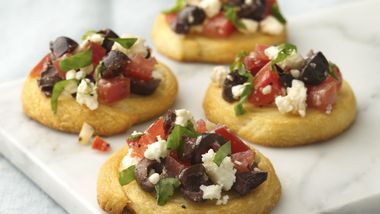 • Garlic cream and tomatoes top this broiled crostini – a tasty snack that’s ready in just 15 minutes! Make ahead and store for an anytime-munch.