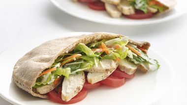• Grilled meat and bagged salad greens create dinner in minutes.