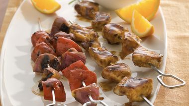 You can make these kabobs ahead of time. Cover and refrigerate prepared kabobs up to 24 hours ahead, then they'll be ready to pop on the grill when you are ready to cook dinner.