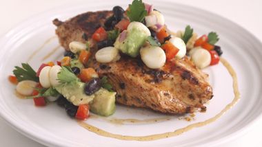 Swordfish is a good choice because it contains omega-3 fatty acids. Combined with black beans and corn, this dish is a good source of many vitamins and minerals.
