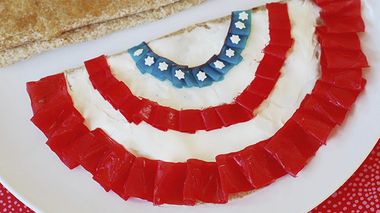 Abre y desenrolla el Fruit by the Foot™ azul y rojo. Envuelve cada palito de pan conde cada color, dejando espacio blanco entre el color.
