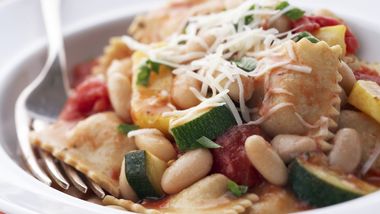 • Convierte los ravioles congelados en un impresionante guisado con mucho sabor italiano y mucho queso estilo suizo.