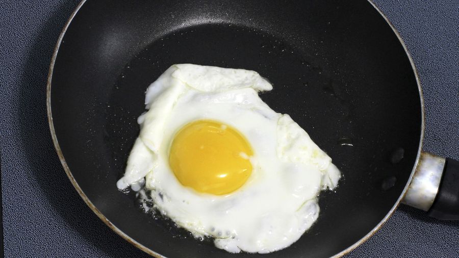 Mientras, calienta una sartén pequeña rociada con un poco de aceite vegetal en aerosol. Agrega el huevo y cocina hasta que la clara esté firme y la yema blanda.