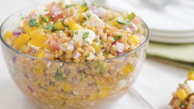 • 6 onzas de queso fresco desmenuzado o cortado en cubos de 1/2 pulgada