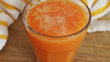 Puedes usar jugo de naranja comercial y 1/2 taza de leche condensada en lugar de la miel si quieres que la bebida tenga la consistencia de un licuado.