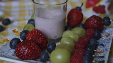• Las frutas son una de las comidas más sabrosas para disfrutar en el verano. Con azúcar natural y muchas propiedades, son el snack perfecto para cualquier momento del día y celebración. No fue hace mucho que celebramos el cumpleaños de la pequeña de la familia, y al ser en la temporada de calor, el menú siempre resulta un desafío. La idea fue escoger alimentos refrescantes, que no tengan muchas calorías y que los niños disfruten. Las frutas cumplen con todos estos requisitos. Por eso es que se me ocurrió crear unos pinchitos de frutas diferentes, y elaboré unos kabobs hechos con uvas y arándanos en forma de orugas.