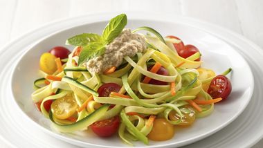 • Mucha gente cree, erróneamente, que ser vegetariano es algo muy difícil. En realidad, la comida vegetariana es fácil de hacer y, en la mayoría de los casos, menos costosa que comer carne. Sin embargo, requiere mucha creatividad si antes preparabas todas tus recetas con proteína animal. Además, preparar solo platos vegetarianos es un nuevo territorio. Pero una vez que le encuentres el truco, ¡crear un plato vegetariano será tan sencillo como preparar cualquier otro! Hacer una comida vegetariana es la excusa perfecta para probar nuevas técnicas e ingredientes. Si le sumas diversión y creatividad, obtendrás platos interesantes como esta lasaña cruda, ¡y nunca te aburrirás!