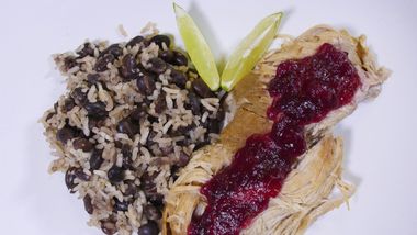 Acomódalo en una asadera forrada con papel aluminio y hornea por 30 minutos. Barniza con el jugo que suelta y sigue horneando por una hora, aproximadamente, o hasta que al insertar un termómetro tenga una temperatura interna de 170 °F. Una vez que esté listo retira del horno, cubre con papel aluminio y deja reposar un rato.