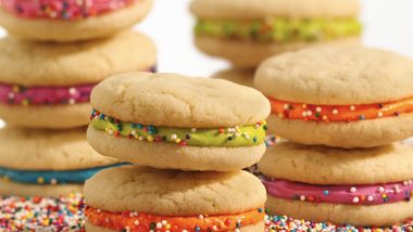 Abre y desenrolla el Fruit by the Foot™ azul y el rojo. Corta líneas decorativas en ambos colores para adornar la parte de arriba de las maracas (brownies). Colócalas sobre los brownies para medir como te van a quedar antes de usar la crema.