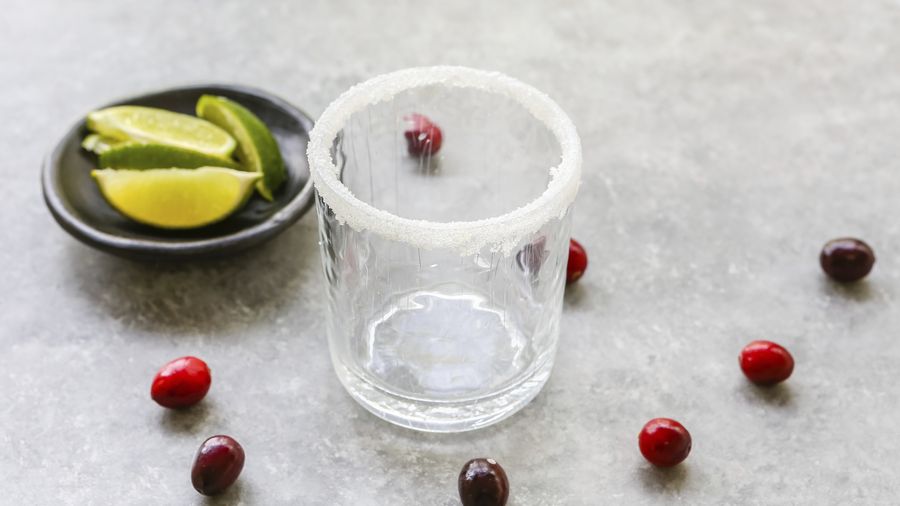 Humedece la orilla de un vaso con el jugo de la mitad de un limón, luego pasa la orilla del vaso en un recipiente con azúcar.