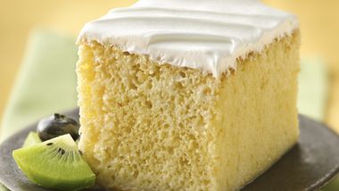 Precalienta el horno a 350°F. Ponlo a 325°F si usas un recipiente oscuro o uno que no se pegue. Prepara y hornea el pastel tal como te indica la caja, en un molde de 13x9 pulgadas. Déjalo enfriar 15 minutos.