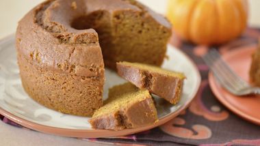 En el tazón de la batidora agrega la harina preparada para pastel, el puré de calabaza, la leche, los huevos y la especia de calabaza. Mezcla siguiendo las instrucciones del paquete.