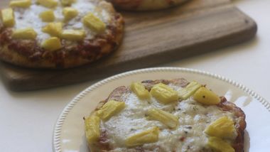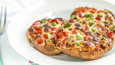 Sirve una variedad de mini pizzas con tus ingredientes favoritos, como salchichas italianas cocidas, pepperoni o simplemente queso.