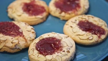 Agrega una cucharadita de mermelada de fresa en el centro. Cubre con otro círculo de masa. Presiona ligeramente para que los discos se unan y con ayuda de un tenedor, sella los bordes.
