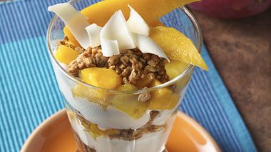 • 1/2 taza de duraznos o mangos frescos rebanados