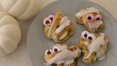 • Se acerca Halloween y las reuniones de amigos para compartir y lucir los disfraces. Algo que me gusta mucho es hacer comida apropiada para la fecha, pero sencilla, fácil y rápida, no es un día para comidas elaboradas. Este año hice estas momias con sabor a churros. Si desean las pueden servir con salsa de chocolate o de cajeta, aún más ricas y tenebrosas.