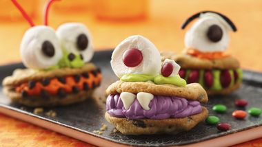 prepara monstruos de diferentes sabores con cereales Franken BerryTM y Boo Berry™ cubiertos con chocolate blanco y una variedad de granas.