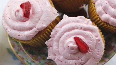 • La música corre por mis venas. Cuando estaba en la preparatoria, era la vocalista de mi banda musical, Boca de Sandía. Mi tía, que tenía su propia banda, me invitó un día a ir de gira con ella como corista y tecladista. Fue una oportunidad inigualable, pero tenía un problema: no sabía tocar el teclado. Tenía que aprender rápidamente a tocar el instrumento, así que se me ocurrió un sistema para lograrlo: utilicé cinta adhesiva multicolor para marcar las distintas notas así como números para ayudarme a sabes cuándo y qué teclas debía tocar. Funcionó de maravilla en los ensayos y mi tía estaba muy complacida con mi trabajo. Pronto llegó la gira y pude viajar por todo el mundo. ¡Pero todavía no sabía como tocar el teclado! Me apoyaba totalmente en la estrategia de la cinta adhesiva y los números. Un día, tocamos en el Ogden Theater de Denver, Colorado. Por alguna razón, mi teclado se había quedado al aire libre y el calor había derretido la cinta adhesiva y los números se borraron. De más esta decir que fue el peor concierto de mi vida. Estaba muy deprimida al regresar al hotel y decidí que lo único que podría contentarme era cocinar, ya que teníamos hornos en las habitaciones. Decidí preparar estos muffins de fresa con chispas de chocolate y me sentí mejor después de comerlos. Esa misma noche, ¡también aprendí a tocar el teclado sin cinta adhesiva o números!