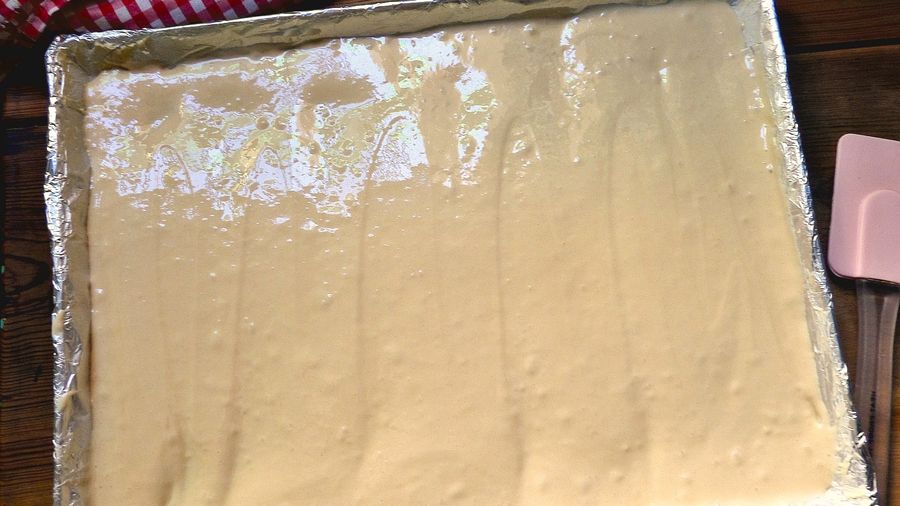 Vierte 3 tazas de la mezcla a la charola preparada. Hornea a 350°F por 12 a 15 minutos. Retira del horno.