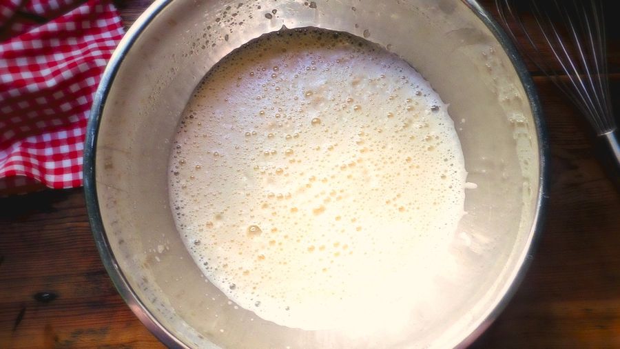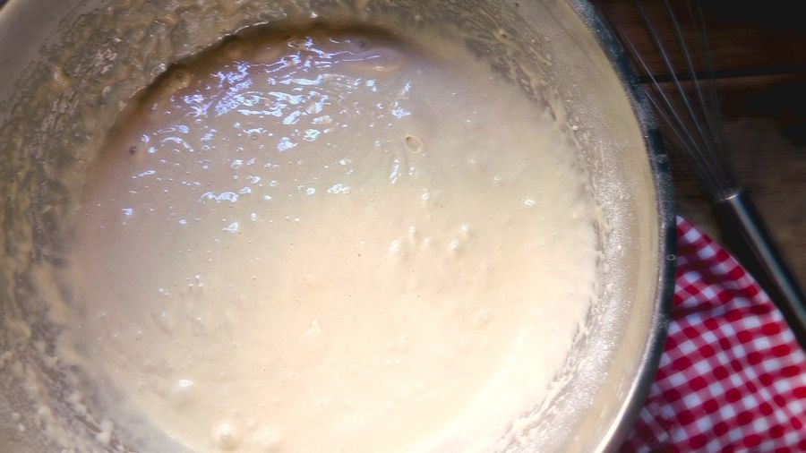 Bate los huevos con un batidor eléctrico a velocidad media por 5 minutos o hasta que la mezcla esté esponjosa y de color amarillo claro.