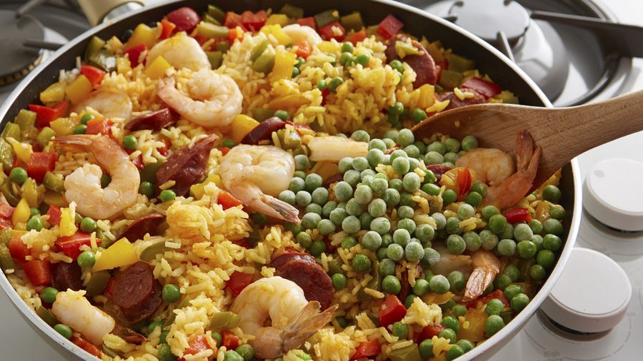 • La paella es un platillo que me trae muchos recuerdos de mi infancia. Mi abuela la preparaba con tanto cariño y añadía varios ingredientes incluyendo mariscos, carne cerdo, chorizo y pollo emulando la paella valenciana de España. Como ahora los camarones están de temporada, quiero compartir con ustedes una receta sencilla basada en la receta original de mi abuela. ¡A cocinar!