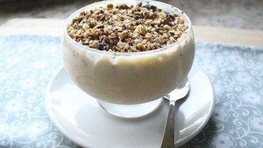 En la licuadora, licúa las nueces, la leche entera, la leche condensada y el extracto de vainilla a velocidad baja hasta que todos los ingredientes estén bien unidos.