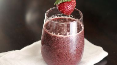 Coloca los vasos de plástico sobre una charola que quepa en tu congelador. Agrega a cada vaso el jugo de naranja y una cucharada de moras azules por porción. Congela esta preparación por 45 minutos.