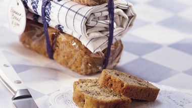 Hornea de 50 a 60 minutos o hasta que al insertar un palillo en el centro, éste salga limpio. Enfría 10 minutos. Despega del molde los lados de la hogaza de pan; sácala del molde y enfríala en una rejilla para galletas. Enfríala por completo antes de rebanarla, al menos 1 hora.