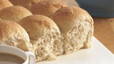 Calienta el horno a 375 ºF. Destapa la masa; hornea por 30 minutos. Baja la temperatura del horno a 350 ºF; hornear por 10 a 15 minutos más o hasta que los panes suenen huecos al golpearlos ligeramente. Retira inmediatamente de los moldes; ponlos en un estante de alambre. Enfría completamente, por cerca de 1 hora.