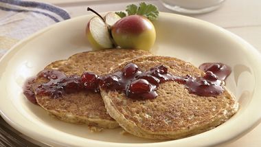 Para cada pancake, vierte 1 cuarto de taza de la masa en la plancha caliente (si la masa es demasiado espesa, añade más leche, 1 cucharada a la vez, hasta obtener la consistencia deseada). Cocina los pancakes hasta que esponjen y tengan burbujas sin reventarse. Voltéalos; déjalos en la plancha hasta que tengan un color dorado oscuro. Sirve con moras o arándanos azules y/o fresas encima.