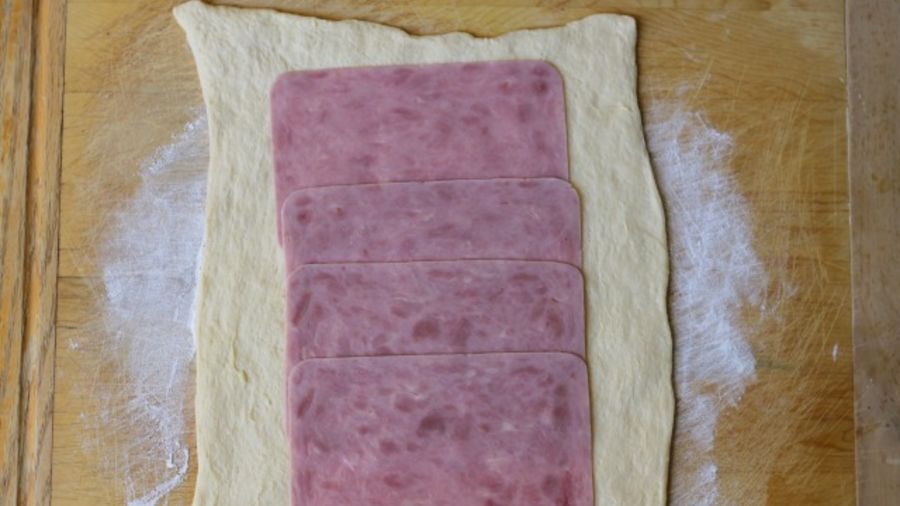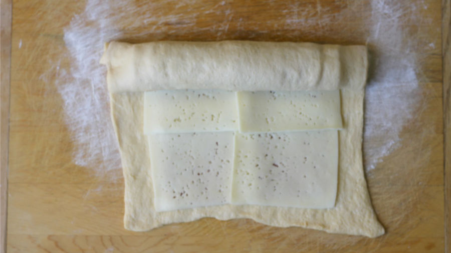 Enrolla la masa y cierra los bordes de masa, para que no se salga el relleno.