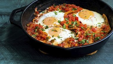 Tapa la sartén y cocina lentamente los huevos, unos 5-8 minutos.