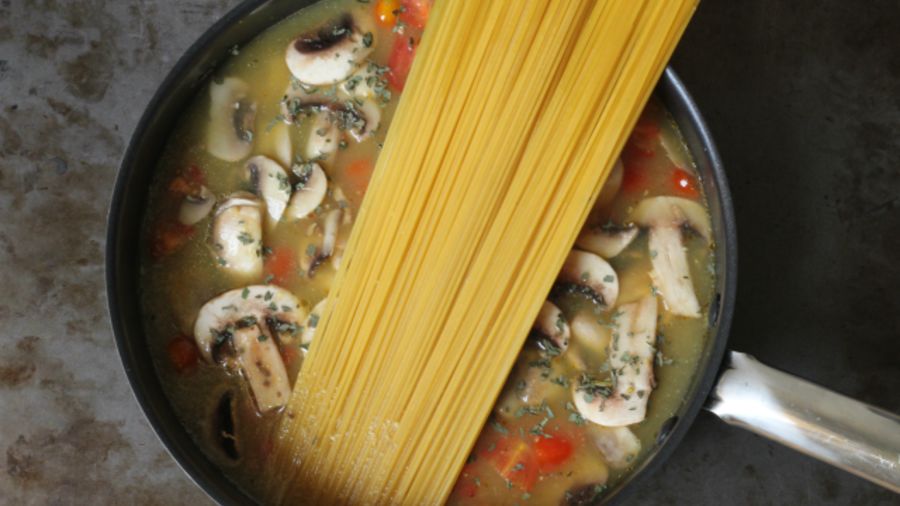 Añade las espinacas cuando la pasta esté casi lista y el líquido se haya evaporado.