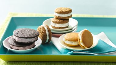 Espolvorea las galletas picadas y media taza de chispas de chocolate sobre el helado de cereza; oprime ligeramente. Extiende helado de vainilla sobre la parte superior. Sirve pequeñas cucharadas del glaseado de fudge sobre el helado; forma remolinos en el helado. Espolvorea con la media taza restante de chispas de chocolate; presiona ligeramente. Congela aproximadamente 8 horas, hasta que esté firme.