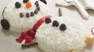 Precalienta el horno a 350 °F (325 °F para un molde oscuro o antiadherente). Engrasa o rocía con aceite de cocina en aerosol el fondo y los lados de una bandeja de 13 x 9 pulgadas. Prepara y hornea el pastel según las instrucciones de la caja para una bandeja de 13 x 9 pulgadas. Deja enfriar por 10 minutos, retira el pastel de la bandeja y colócalo en una rejilla para enfriar. Deja enfriar por completo, alrededor de 1 hora. Refrigera o congela el pastel durante 1 hora hasta que esté firme.