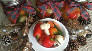 Acomoda el brócoli en un platón, de tal manera que formes un árbol; acomoda los tomates (jitomates) para formar una guirnalda. Acomoda el pimiento para formar una estrella y la coliflor para formar nieve (ve la fotografía). Si lo deseas, tapa y refrigera hasta 4 horas.