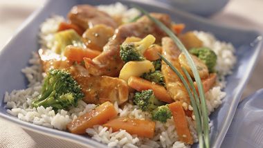 Este ligero plato principal esta cocinado con ingredientes frescos del mercado--una mezcla perfecta para un platillo delicioso.