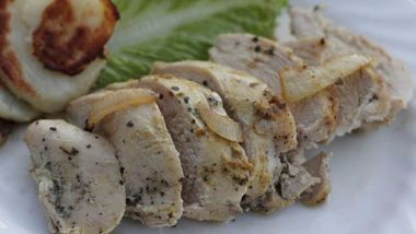 3Hornea las pechugas de 20 a 25 minutos sin cubrir, volteándolas una vez, hasta que, al picarlas en el centro de la parte más gruesa, el jugo salga claro.
