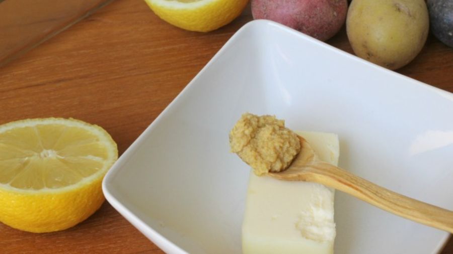 Derrite la mantequilla en el microondas y mézclala con el ajo machacado.