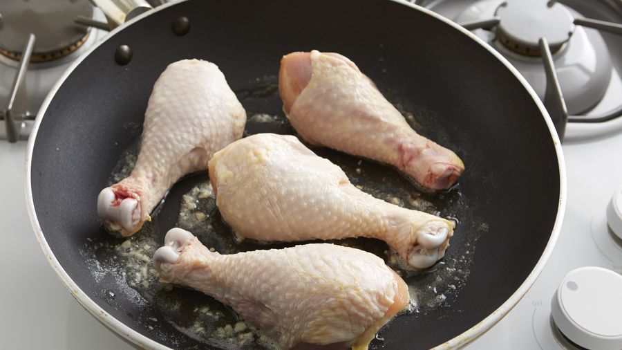 Sazona con sal y pimienta, y deja freír el pollo por unos 15 minutos.