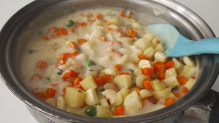 Si quieres que el relleno de vegetales quede más espeso agrega una pasta de una cucharadita de harina combinada con una cucharadita de mantequilla, revolviendo bien hasta que esté del espesor deseado.