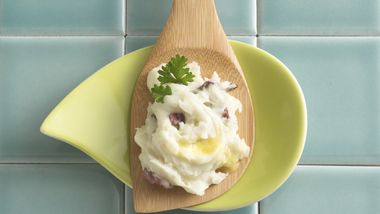 • Siempre que organizo una cena de Acción de Gracias a la canasta, incluyo todos los platos típicos de esta celebración. La única diferencia es que incorporamos los ingredientes que solemos incluir en nuestras comidias diarias. Y el puré de papas no puede faltar. Para darle un delicioso toquecito picante, me gusta prepararlo con rodajitas de jalapeño asado. La clave está en asarlos en pequeños trocitos para que en cada bocado de puré se sienta su sabor picante.