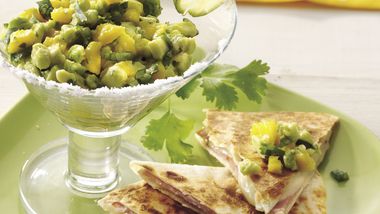 Calienta una sartén grande antiadherente con aceite en aerosol, a fuego medio. Con cuidado, coloca 1 quesadilla en la sartén y cocina por 2 minutos. Con una espátula, voltea con delicadeza la quesadilla y cocina 2 minutos más hasta que esté ligeramente dorada y el queso se derrita.Repite el proceso con la otra quesadilla.