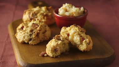 Sirve estas botanas que serán el deleite de tu fiesta- utilizando los cuernitos o medias lunas refrigeradas de Pillsbury® y tocino.