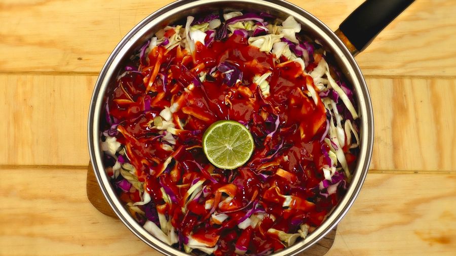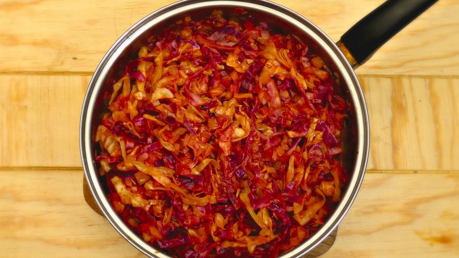 Cubre la cazuela y reduce a fuego lento. Deja cocinar por 12 a 15 minutos o hasta que el repollo esté completamente cocido.